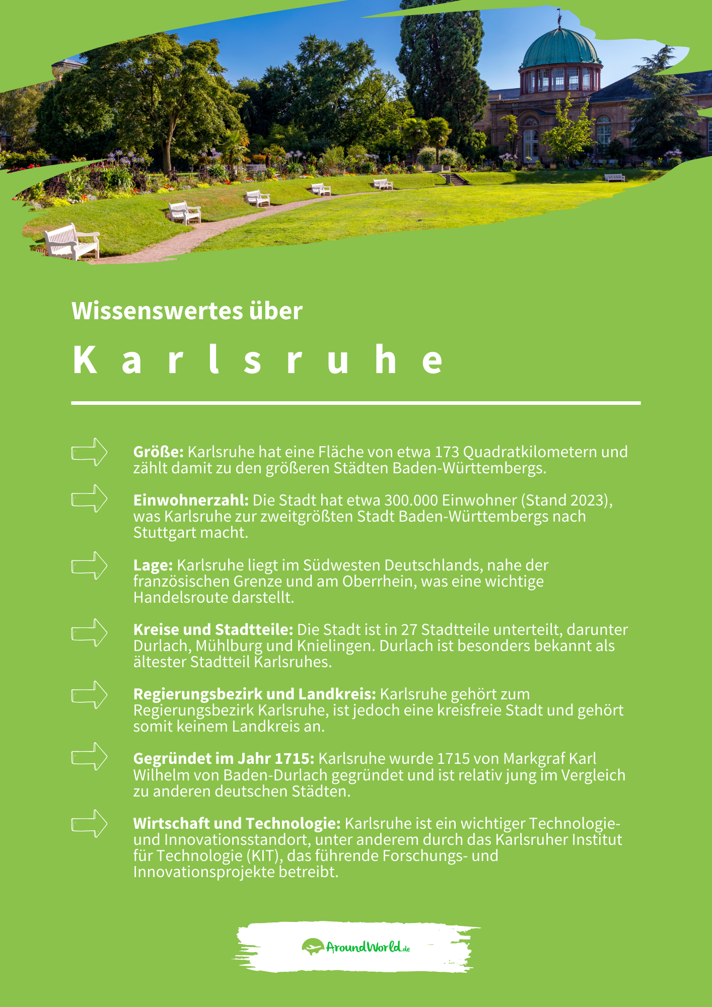 Karlsruhe ist eine Stadt, die sich nicht auf den ersten Blick erschließt, sondern ihre Schätze Stück für Stück offenbart. Die Mischung aus historischen Bauwerken, modernem Stadtleben und grünen Erholungsräumen macht Karlsruhe zu einem inspirierenden Ort.